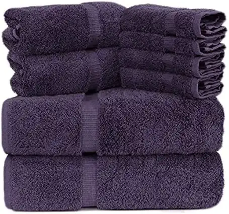 Towel Bazaar Premium Turkish Cotton Super Soft and Absorbent Towels (8-Piece Towel Set, Plum Purple), Small