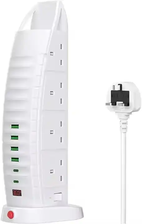 amazon.comTower Extension Lead with USB and Type-C – 8 Way Outlets, 6 USB Ports (4 USB-A, 2 TYPE-C), 2M Cable, Surge Protector, Vertical Power Strip with Independent Switches for Home Office Desk Use