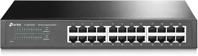 TP-Link 24 Port Gigabit Ethernet Switch Desktop/Rackmount Plug & Play Shielded Ports Sturdy Metal Fanless Quiet Traffic Optimization Unmanaged (TL-SG1024S)