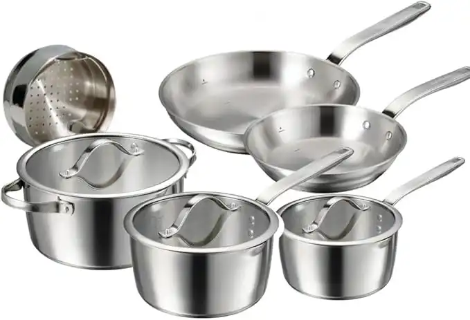 Tramontina Since 1911, 9-Piece Tempo Tri-Ply Base Stainless Steel Cookware Set with Glass Lids, Pots and Pans Kitchen Set, Induction-Ready, Oven-Safe, Dishwasher-Safe 37240028