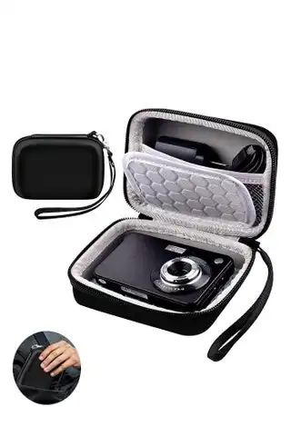 Travel Digital Camera Case Storage Bag for Camera Hard Shell Shockproof Box, Pocket Camera Protective Case Travel Cable Storage Bag Replacement (Black)