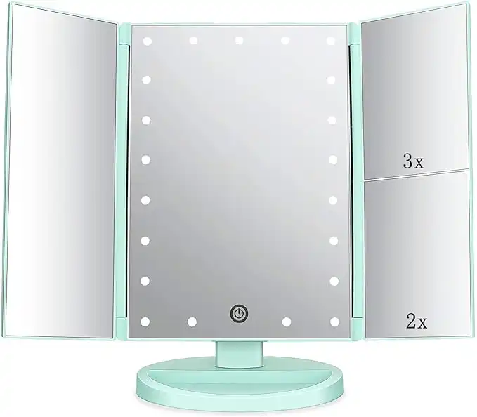 Tri-fold Lighted Vanity Makeup Mirror with 3x/2x/1x Magnification, 21Leds Light and Touch Screen,180 Degree Free Rotation Countertop Cosmetic Mirror,Travel Makeup Mirror (Green) — Price History & Tracker | DeserTracker