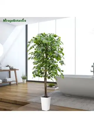 Triple Trunk Artificial Ficus Tree with Natural Wood Trunks, Fake Tree for Indoor Home Décor, Faux Ficus Tree with White Tall Planter, Office Decor — Price History & Tracker | DeserTracker
