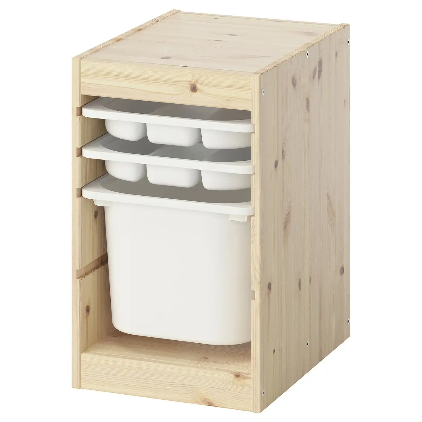 TROFAST storage combination with box/trays, light white stained pine/white, 32x44x52 cm - IKEA