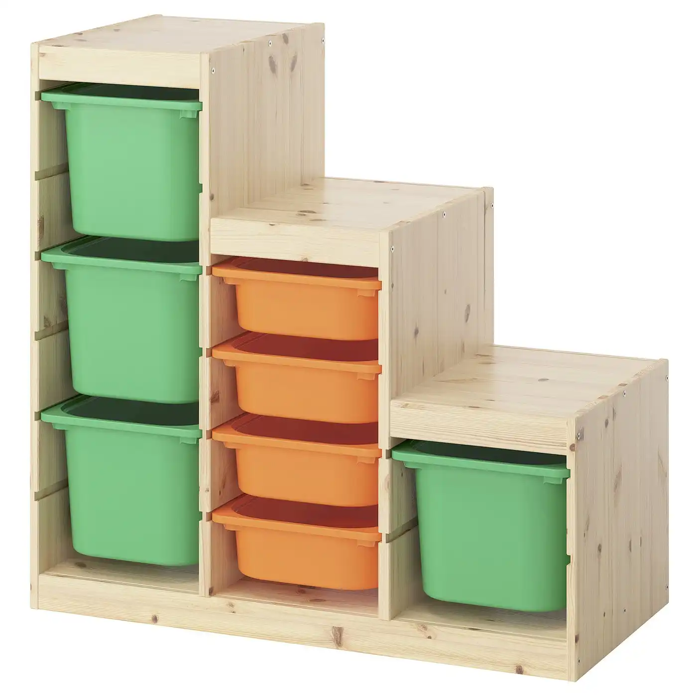 TROFAST storage combination with boxes, light white stained pine light orange/bright green, 94x44x91 cm - IKEA
