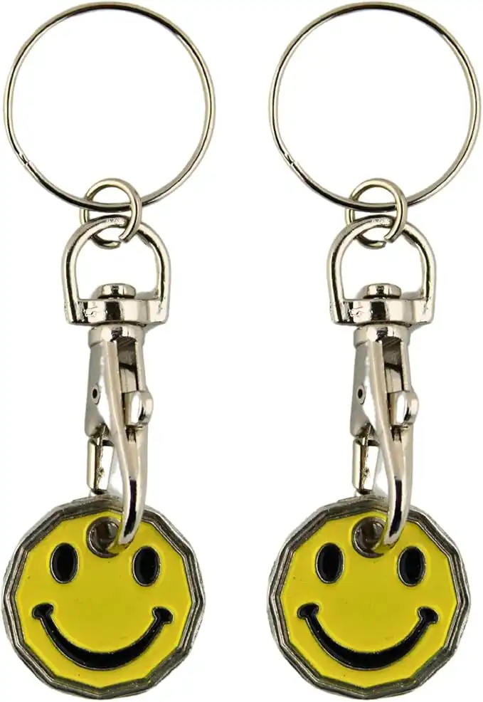 Trolley Token New £1 Coin Shape 12 Sided Shopping Cart Key Ring Release Shop Locker Keychain (2 x Smiley) — Price History & Tracker | DeserTracker
