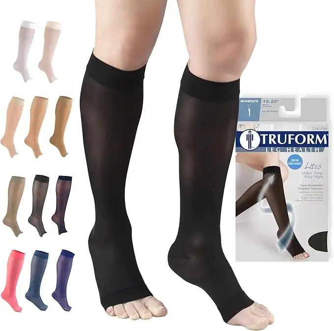 Truform Sheer Compression Stockings, 15-20 mmHg, Women's Knee High Length, Open Toe, 20 Denier, Black, Small — Price History & Tracker | DeserTracker