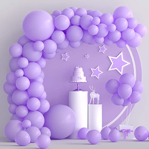 TUPARKA Purple Balloons 102 Pcs Light Purple Balloons Garland Arch Kit 18 12 10 5 inch Purple Balloons with Garland Strip for Birthday Baby Shower Wedding Party Decorations