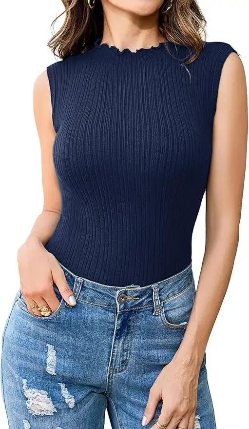 amazon.comTurtleneck Shirt Women's Sleeveless Turtleneck Top Elegant Base Pullover Slim Fit Knitted Pullover Stand-Up Collar Ribbed Basic Tank Top Stretch Plain