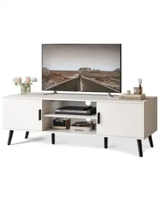 Tv Cabinet with Adjustable Shelf Solid Wood Feet For Living and Bedroom White Color