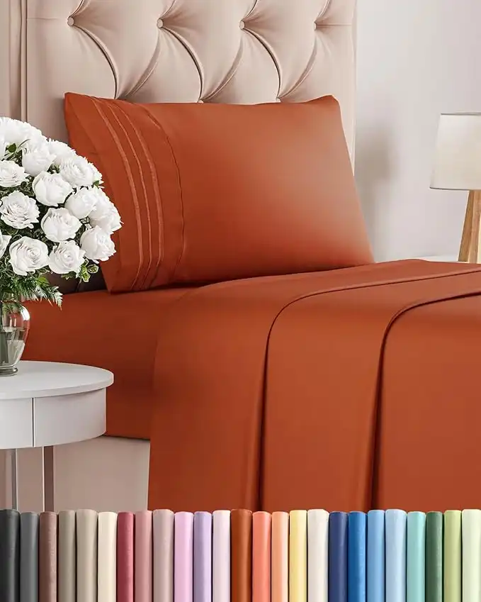 amazon.aeTwin Size 3 Piece Bedding Sheet Set - Breathable & Cooling Bed Sheets - Hotel Luxury Bed Sheets for Boys, Girls, Kids & Teens - Deep Pockets, Easy-fit - Soft & Wrinkle Free - Terracotta Oeko-Tex Set
