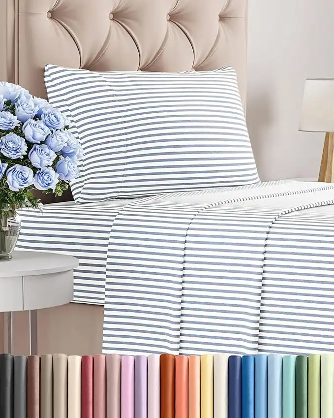 amazon.aeTwin Size 3 Piece Bedding Sheet Set - Breathable & Cooling Bed Sheets - Hotel Luxury Bed Sheets for Boys, Girls & Kids - Deep Pockets, Easy-fit - Soft & Wrinkle Free - Blue Stripes Oeko-Tex Set