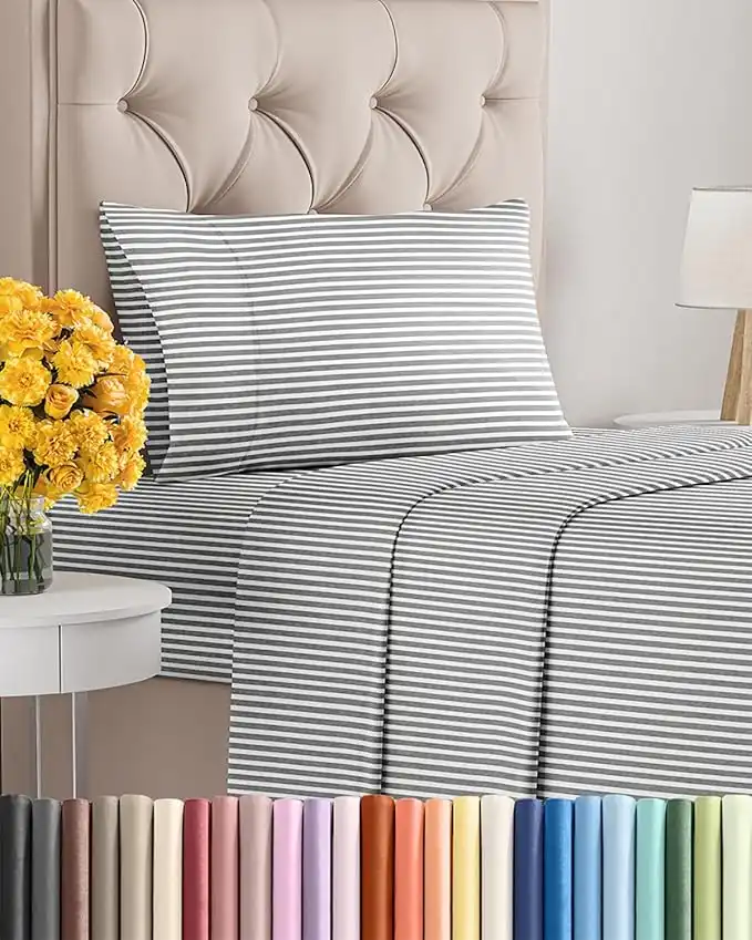 amazon.aeTwin Size 3 Piece Bedding Sheet Set - Breathable & Cooling Bed Sheets Hotel Luxury Bed Sheets for Boys, Girls, Kids & Teens - Deep Pockets - Easy-fit - Soft & Wrinkle Free - Grey Stripes Oeko-Tex Set