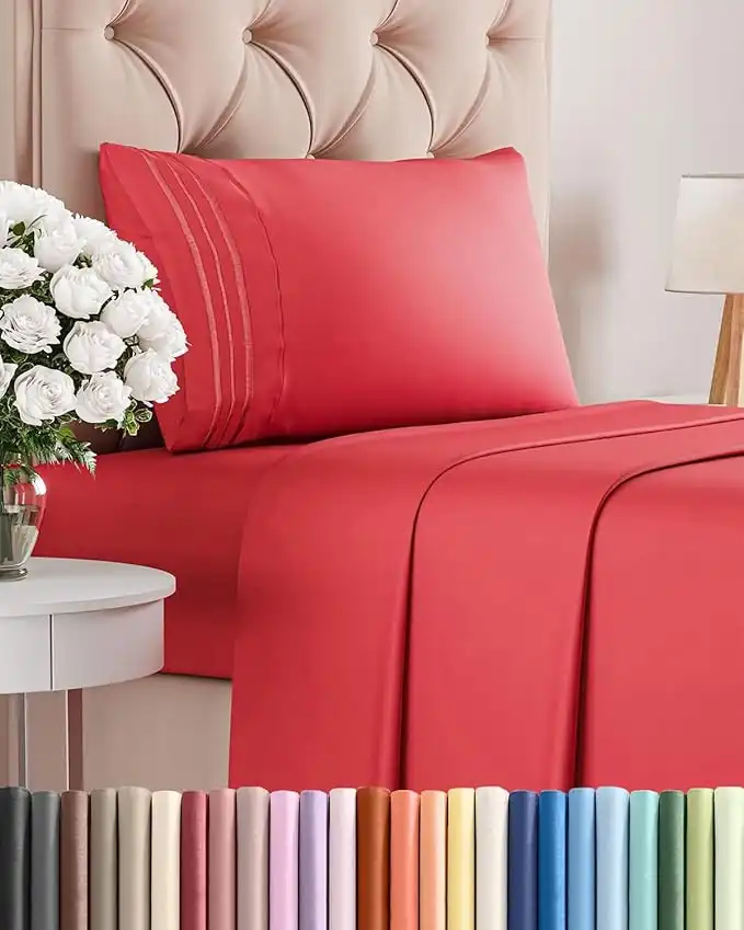 Twin Size 3 Piece Sheet Set - Comfy Breathable & Cooling Sheets - Hotel Luxury Bed Sheets for Women, Men, Kids & Teens - Deep Pockets, Easy-Fit, Soft & Wrinkle Free Sheets - Red Oeko-Tex Bed Sheet Set