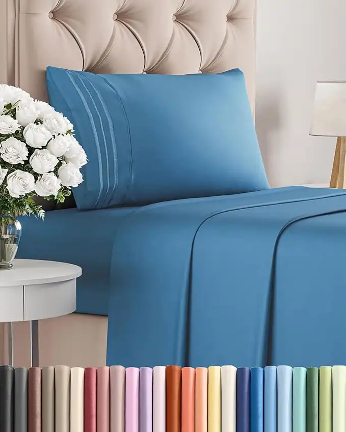 amazon.aeTwin XL Size 3 Piece Sheet Set - Comfy Breathable & Cooling Bed Sheets Set - Hotel Luxury Bedding for Women, Men, Kids, Teens, Boys & Girls - Deep Pockets, Soft, Wrinkle Free - Oeko-Tex - Denim Blue