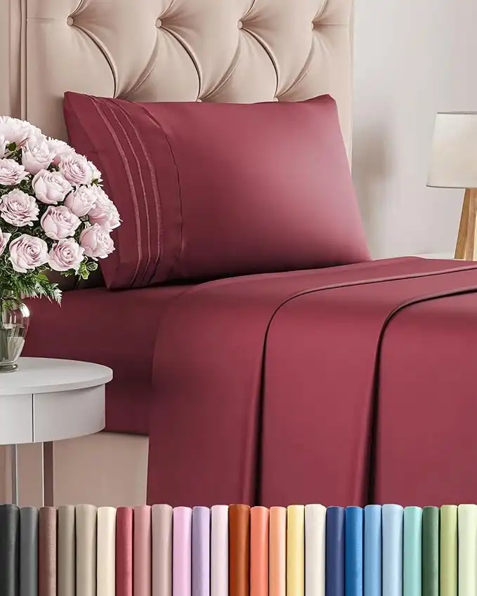 amazon.aeTwin XL Size 3 Piece Sheet Set - Comfy Breathable & Cooling Bed Sheets Set - Hotel Luxury Bedding for Women, Men, Kids, Teens, Boys & Girls - Deep Pockets, Soft and Wrinkle Free - Oeko-Tex - Burgundy
