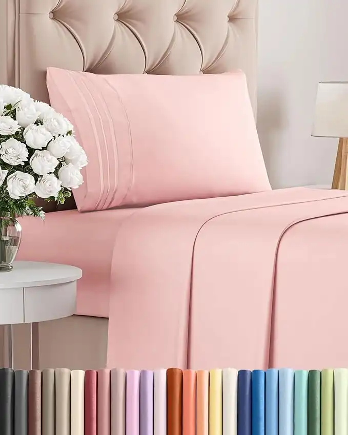 amazon.aeTwinXL Size 3 Piece Bedding Sheet Set - Breathable & Cooling Bed Sheets - Hotel Luxury Bed Sheets for Kids, Teens, Women & Men - Deep Pockets - Easy-fit - Soft & Wrinkle Free - Baby Pink Oeko-Tex Set