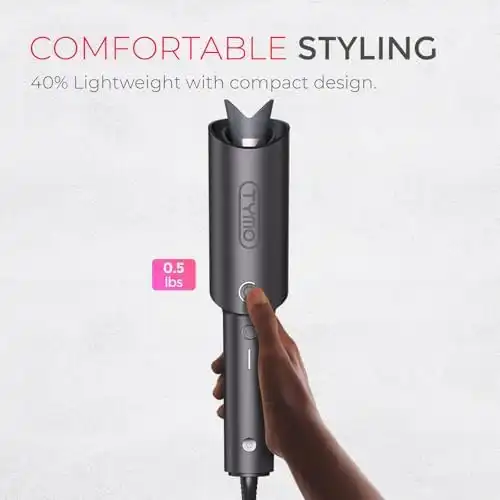 TYMO Automatic Rotating Curling Iron - TYMO CURLPRO Beach Waves Curling Wand, Portable Hair Curler, 500 Million Ionic, Dual Voltage & Lightweight for Travel, Ceramic Coating, Metallic Gray, 25mm