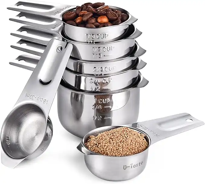 U-Taste Measuring Cups: U-Taste 18/8 Stainless Steel Measuring Cups Set of 7-Piece: 1/8 Cup, 1/4 Cup, 1/3 Cup, 1/2 Cup, 2/3 Cup, 3/4 Cup, 1 Cup Dry and Liquid Ingredients