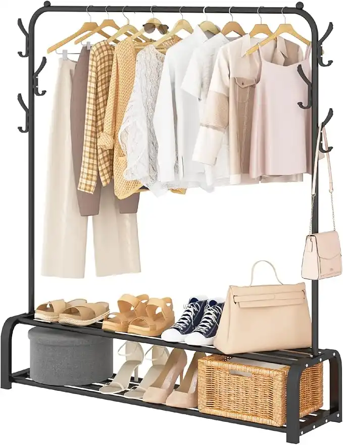 UDEAR Garment Rack standing Clothes Rack With Top Rod,Lower Storage and 6 Hooks,Black — Price History & Tracker | DeserTracker