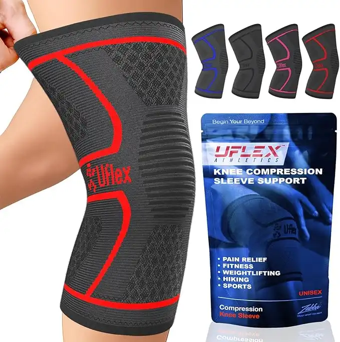 UFlex Athletics Knee Compression Sleeve Support for Women and Men - Knee Brace for Pain Relief, Fitness, Weightlifting, Hiking, Sports - Red, Large — Price History & Tracker | DeserTracker