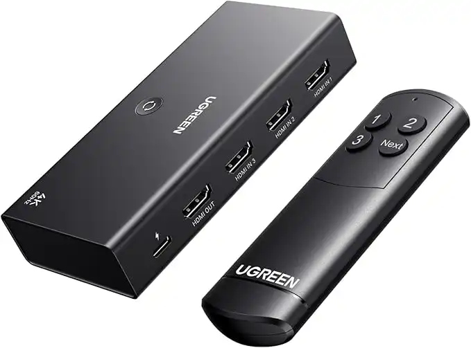 UGREEN 3 IN 1 OUT HDMI Switch, Unidirectional HDMI Splitter With Remote, Support 4K, HDR, 3D, Dolby Sound, 192kHz 24bit, Compatible for PC, Laptop, Blu-ray DVD, PS4/PS4 pro, Xbox, Switch, Apple TV etc