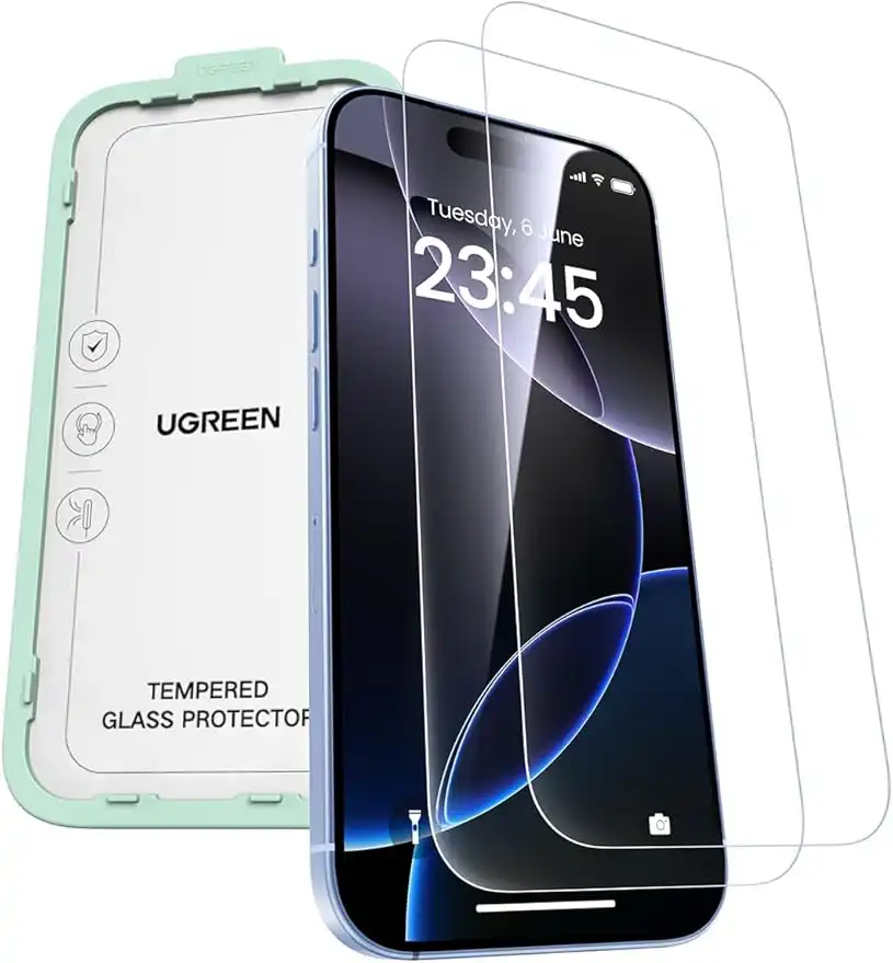 UGREEN for iPhone 17/iPhone 16 Pro Screen Protector 6.3'' 9H Unbreakable Protection HD Ultra Clear] Military-Grade Tempered Glass Screen Protector, Easy to Install, Anti Fingerprint (2 Pack) — Price History & Tracker | DeserTracker