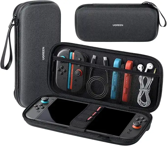 UGREEN Game Storage Bag Compatible with Switch 2 Carrying Case Protective Hard Shell Travel Storage Bag , with Custom Gamepad Slots, Large Capacity Waterproof EVA Oxford Cover