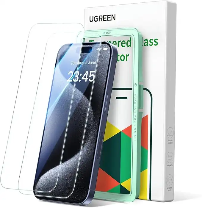 UGREEN iPhone 15 Pro Screen Protector 6.1" Ultimate Drop Defense HD Clear 15 Pro Tempered Glass Screen Protector Easy to Install Case Friendly Scratch Resistant Anti Fingerprint 2 Pack — Price History & Tracker | DeserTracker