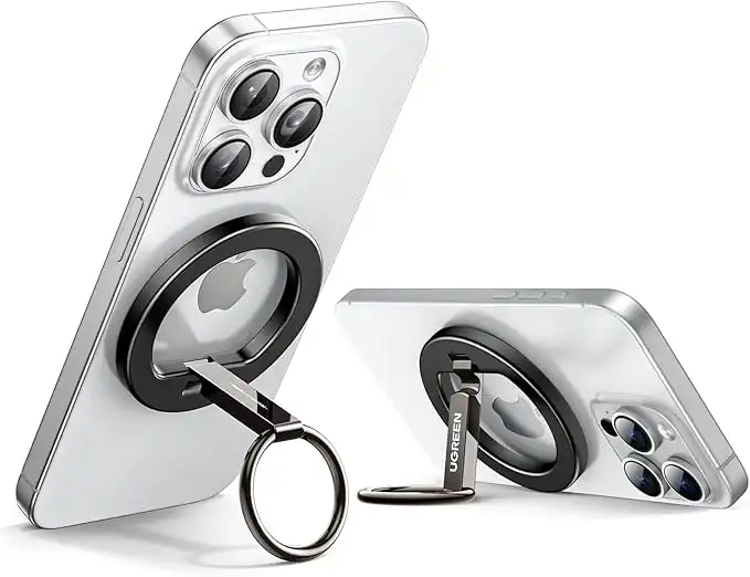 UGREEN Magsafe Ring Magnetic Phone Grip Magsafe Ring Holder, 2 Way Stand Metal Cell Phone Ring Holder Shakeproof Ultra Stable Magnetic for Desk Fit for iPhone 17/16/ Pro Max S26/25/24 Ultra Black