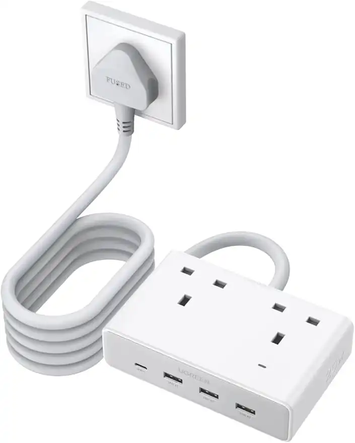 UGREEN Nexode 4 USB Ports Extension Cord, 2 AC 2990W Max Power Strip, PD20W Extension Plug Compatible with iPhone 17, iPad, Laptop, electrical appliances, for Home/Office/Travel,(1.5M White),2025 New