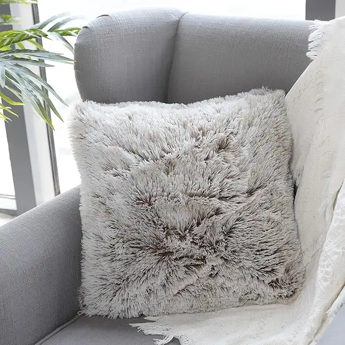 amazon.aeUhomy 1 Pack Fluffy Plush Pillow Covers 18"x18", Full Winter Home Decorative Luxury Fluffy Soft Style Artificial Fur Throw Pillow Case Cushion Cover for Sofa Bed, Brown Ombre 45x45 cm Two Sides Fur