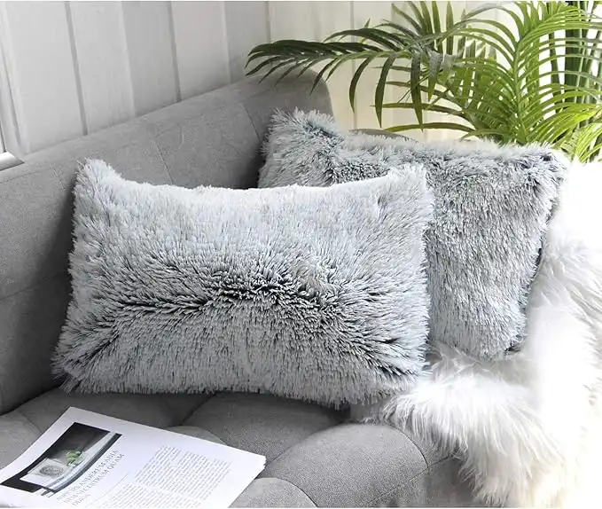 Uhomy 2 Packs Home Decorative Fluffy Double Side Luxury Series Super Soft Faux Fur Rectangular Throw Pillow Cover Furry Cushion Case for Sofa Bed Gray Ombre 12x20 Inch 30x50 cm — Price History & Tracker | DeserTracker