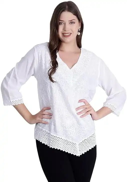 Ukal Hand Embroidered Beige Top/Cotton Tunic/Summer Short Ethnic Chikan Kurti/Boho Short Ethnic Dress for Women — Price History & Tracker | DeserTracker