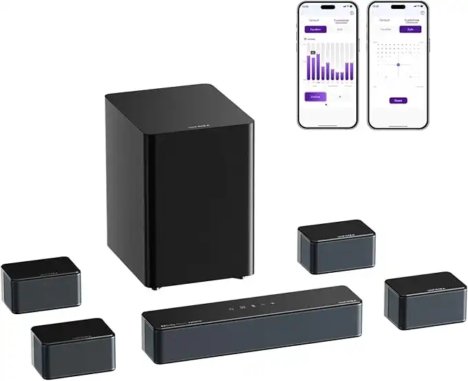 ULTIMEA 7.1 Sound Bar with Dolby Atmos, 500W Home Theater Surround System, HDMI IN&eARC/AUX/Optical, 4 Wired Surround Speakers, Surround Sound System for TV with Wireless Subwoofer, Poseidon D80 Boom