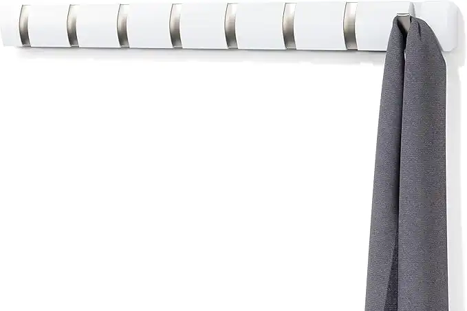 Umbra Flip 8 Hook Wall Mounted Floating Coat Rack, White/Nickel