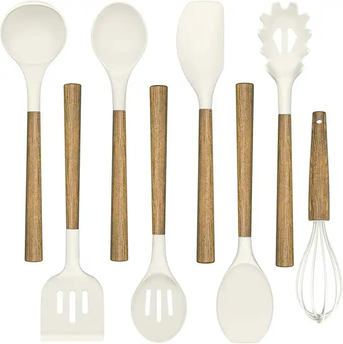 Umite Chef Non-Stick Silicone Kitchen Utensils Set with Natural Acacia Hard Wood Handle, 8 Pieces Kitchen Spatulas Set, White, BPA Free, Baking, Serving and Cooking Utensils — Price History & Tracker | DeserTracker