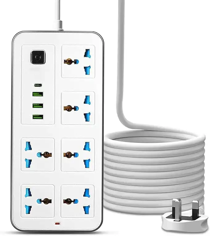 UNICASA™ Universal Power Strip with 6 Outlets, 3 USB Ports, 1 Type-C Port, Surge Protection, 3M Extension Cord, Fast Charging Extension Cord for Home, Kitchen and Office (UK 3-Pin Plug) (White) — Price History & Tracker | DeserTracker