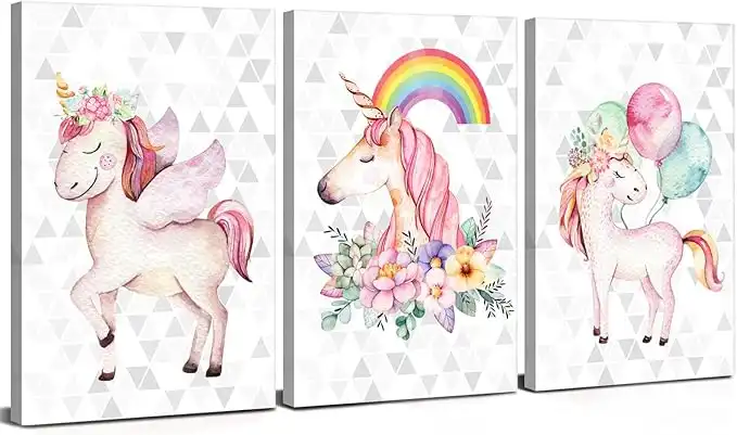 amazon.aeUnicorn Wall Art Unicorn Bedroom Decor for Girls Colorful Rainbow Balloon Posters Nursery Room Painting Girly Pink Floral Canvas Pictures Artwork Kids Toddler Bathroom Home Decorations 12x16" 3 Pieces
