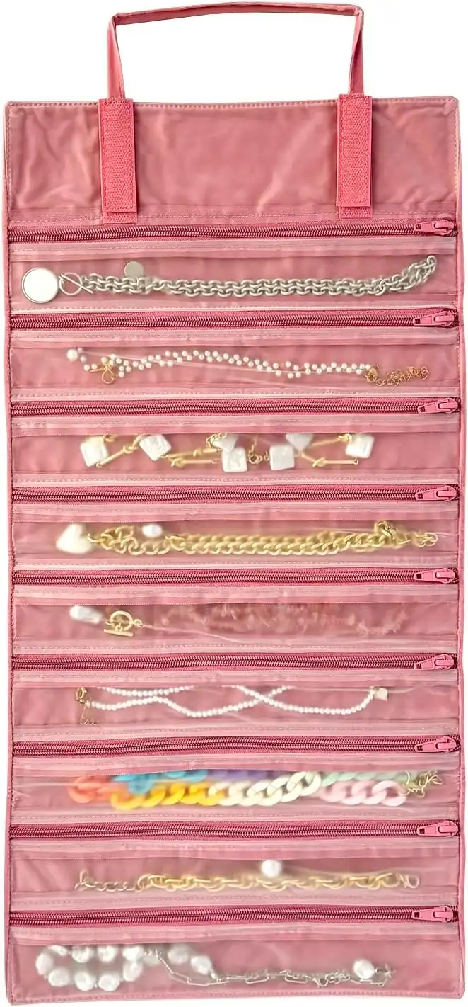 UnionPlus Velvet Travel Jewelry Case Roll Bag Organizer for Necklace Bracelet Earrings Ring, 9/11 Zipped Grids with Necklace Button, PVC Cover (Blush Pink) — Price History & Tracker | DeserTracker