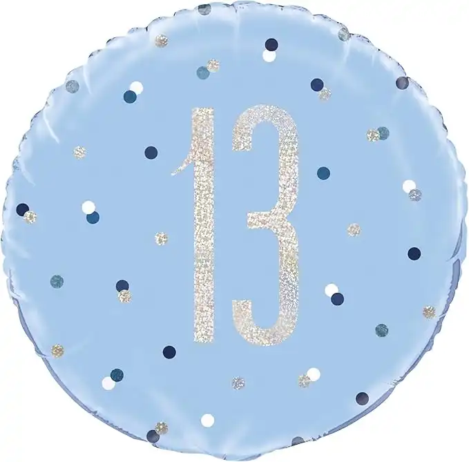 Unique 83354 Blue Prismatic 13th Birthday Round Foil Balloon, 18" 1 Pc, Age 13