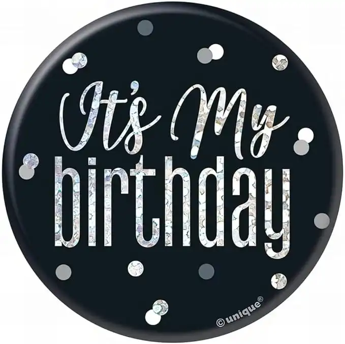 Unique 83503 Black Round Prismatic Birthday Badge 1 Pc, Happy