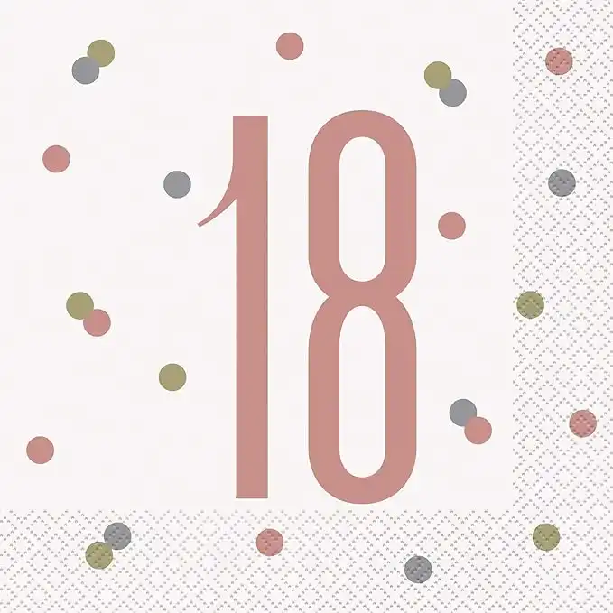 Unique Elegant Rose Gold 18th Glitz Luncheon Napkins (16cm) - Perfect for Parties, Weddings, & Special Occasions - 16 ct