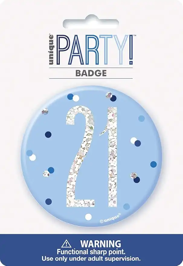 Unique Party 83519 Blue Round Prismatic 21st Birthday Badge 1 Pc, Age 21