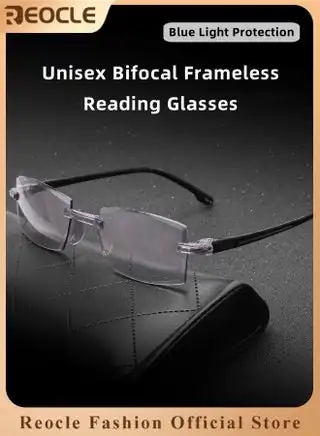 Unisex Bifocal Reading Glasses Elegant Minimalist Frameless Reading Glasses with Blue Light Protection