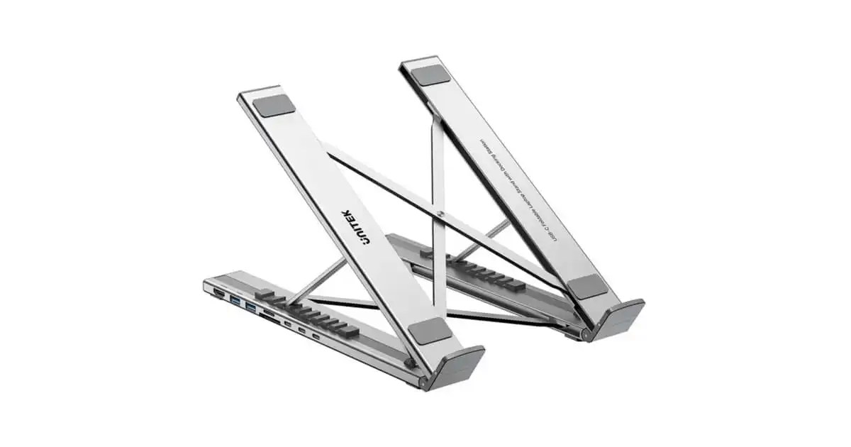 Unitek 7-in-1 USB-C Foldable Laptop Stand With Docking Station Silver – D1137AGY01