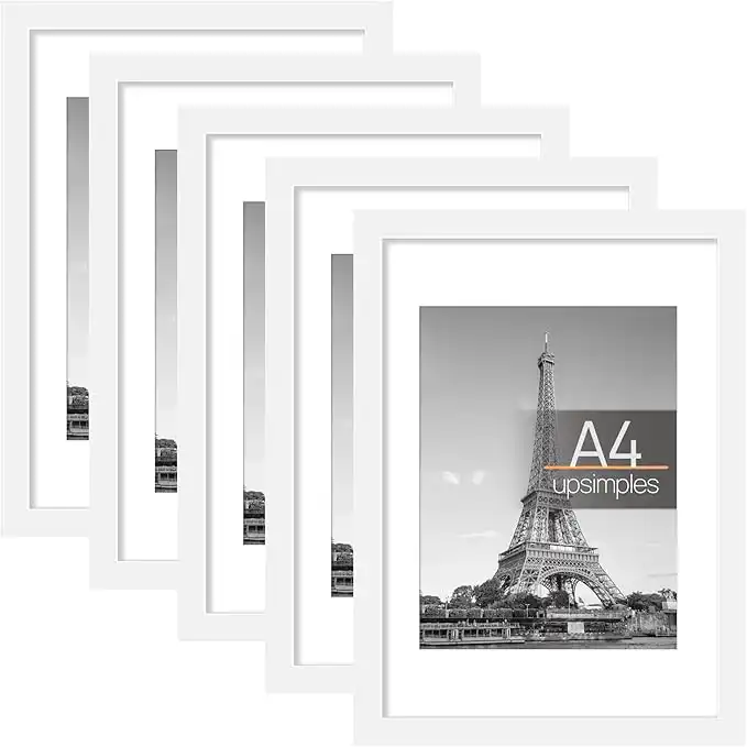 upsimples A4 Picture Frame Set of 5, Display Pictures 6x8 with Mat or 8.3x11.7 without Mat, Wall Gallery Poster Frames, White — Price History & Tracker | DeserTracker