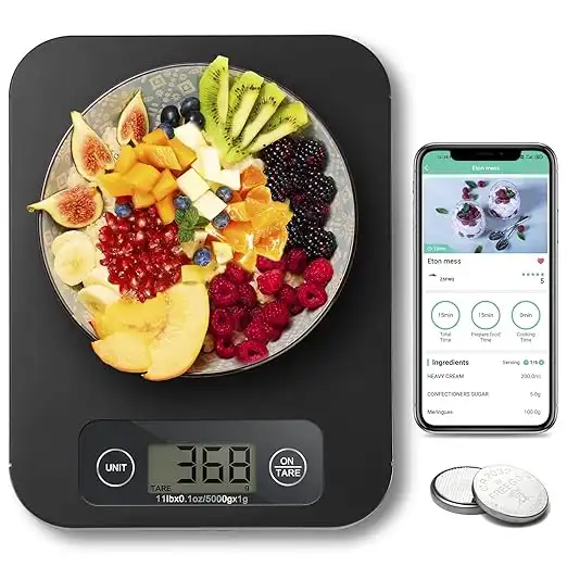 amazon.aeURAMAZ (Black) - Smart Food Scale, Kitchen Food Scales Digital Weight Grammes and Oz with Nutritional Calculator, Food Weight Scale for Baking, Cooking, Macro Calorie Counting, Keto, Meal Prep