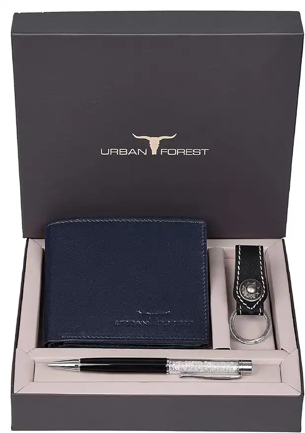 URBAN FOREST Leather Wallet Combo for Men - Leather Wallet, Keyring & Pen Combo Gift Set for Men, Dark Blue — Price History & Tracker | DeserTracker
