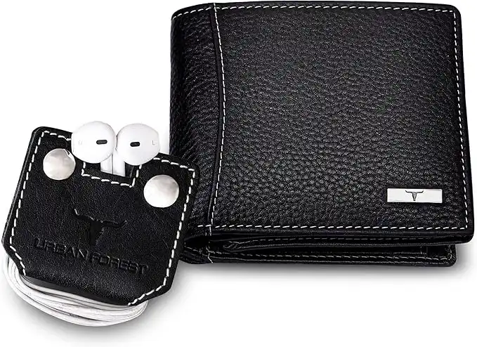 amazon.aeURBAN FOREST Oliver Black Leather Wallet & Earphone Organiser Set for Men